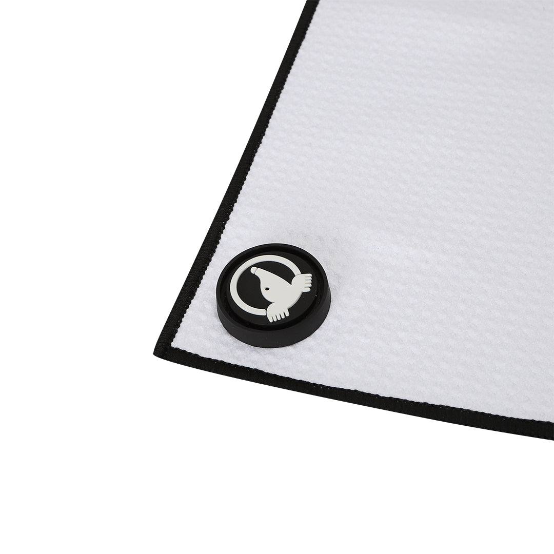 Finished with a convenient grommet and clip for easy attachment to your golf bag, this towel is both functional and sophisticated — a must-have accessory for those who value detail, quality, and style on and off the course.